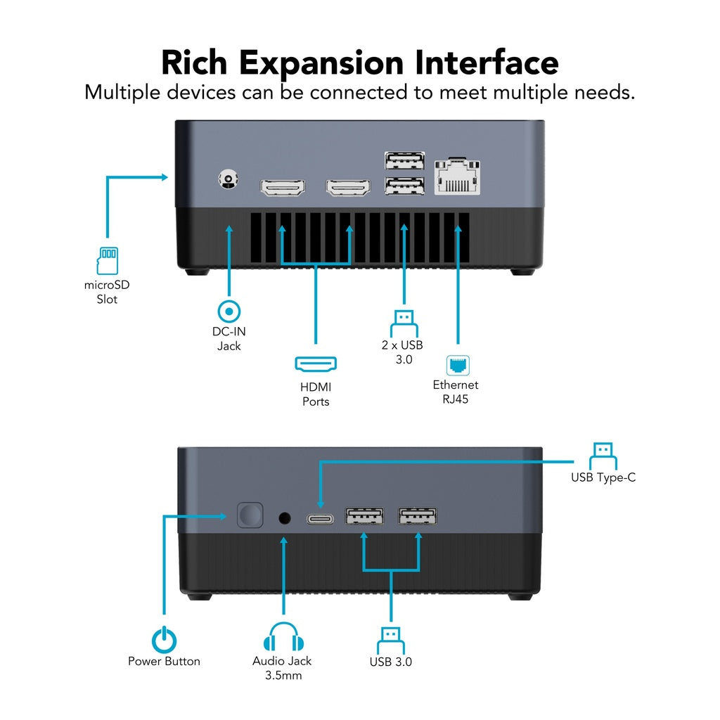 Este Mini CP Hyundai ofrece un espacio máximo gracias a su disco duro de 256GB SSD y su memoria RAM de 8GB. Potenciado por un Intel Core i5 y sistema operativo Windows 10 Pro, este producto brinda un rendimiento óptimo y eficiente para tus tareas y actividades diarias.