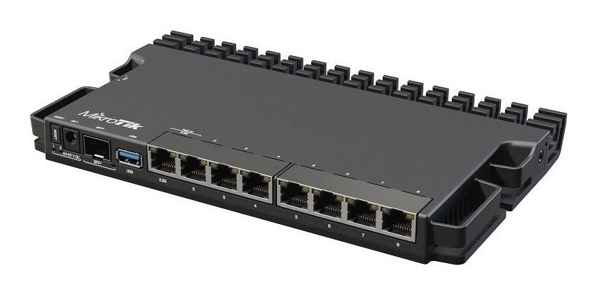 Ruteador GigaBit Ethernet, CPU 4 núcleos de 1.4Ghz, 1GB de RAM, 7 puertos GEth, 1 puerto 2.5GEth, 1 puerto SFP+, 1 puerto USB 3.0, Licencia Nivel 5, Gabinete de escritorio 220 x 125 x 22 mm, incluye adaptador 24V 1.5A.