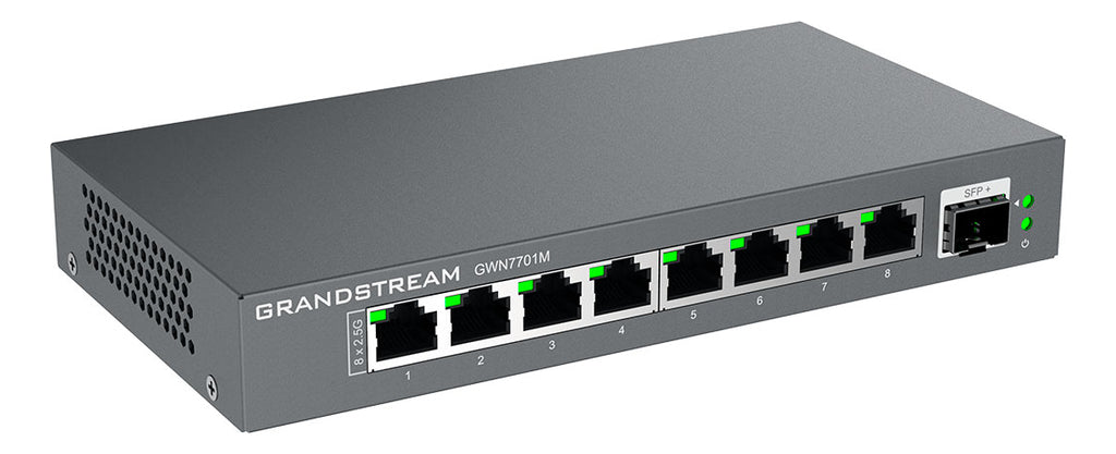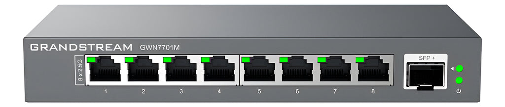 La serie GWN7700M son swirches de red multi gigabit no administrados que brindan conectividad de red de alta velocidad de hasta 2.5 Gbps para oficinas domésticas y pequeñas y medianas empresas. Estos switches multi gigabit de 6 y 9 puertos admiten velocidades de red Ethernet rápidas, 1 gigabit y 2,5 gigabits e incluyen 1 puerto de fibra SFP+ Gigabit que proporciona conectividad de uplink de alta velocidad de 1 gigabit o 10 gigabits a su red. El GWN7700M y el GWN77001M no requieren configuración, se pueden montar en escritorio y en la pared y proporcionan MDI/MDIX automático para eliminar la necesidad de cables cruzados. Admiten la negociación automática en cada puerto para reconocer las velocidades de los dispositivos de red de 100/1000/2500 Mbps y se ajustan de forma inteligente para lograr compatibilidad y un rendimiento óptimo. Los GWN7700M y GWN7701M plug-and-play son los switches de red no administrados ideales para oficinas domésticas y pequeñas y medianas empresas que requieren conectividad multigigabit de alta velocidad.